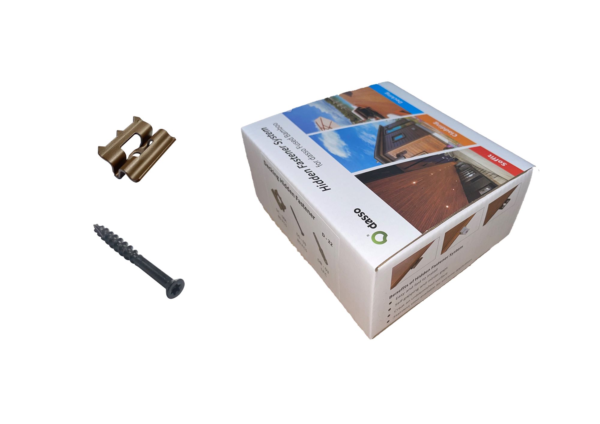Les clips terrasse bambou Dasso sont la solution haut de gamme pour installer votre terrasse en bambou thermotraité avec une finition parfaite sans vis visible. Grâce à leur conception spécifique en acier inoxydable, ces clips terrasse bambou résistent parfaitement à la densité extrême du bambou tout en permettant au matériau de travailler naturellement sans contrainte.