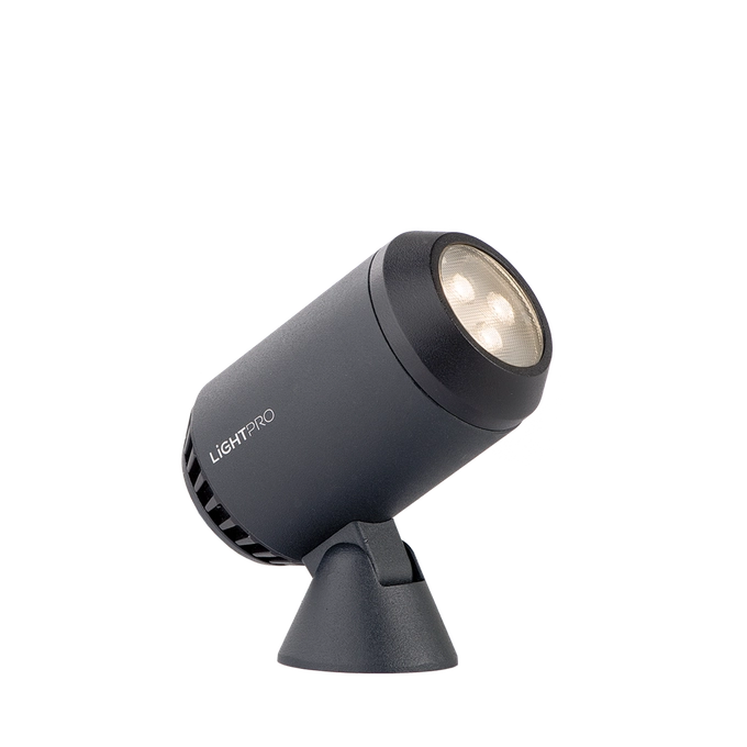 Spot LED 12V orientable sur piquet pour éclairer arbres et végétaux. Aluminium anthracite, 2,5W, 200 lumens, portée 3m. Réglable en hauteur et direction. Livré avec piquet au sol. Installation simple en 12V. Garantie 6 ans.